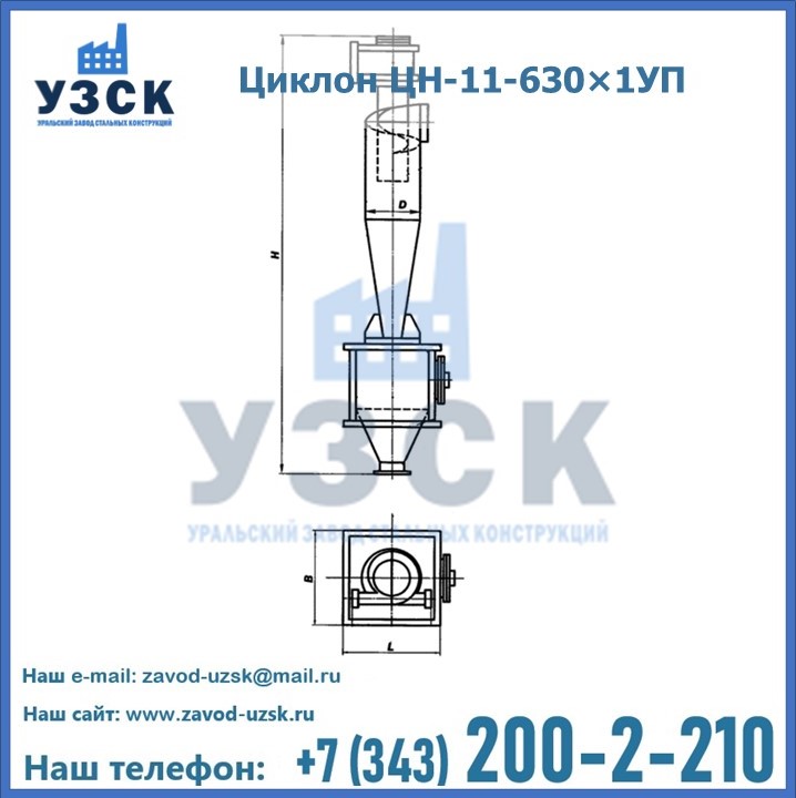 Уральский Завод Стальных Конструкций в Невинномысске производит и продает надежное, эффективное и производительное оборудование, имеющее длительную гарантию и большой эксплуатационный ресурс. УЗСК также предлагает циклоны из нержавеющей стали высокого качества. По желанию заказчика толщина стали для циклона и бункера может быть увеличена. Заказать и купить циклоны ЦН-11 высокого качества и по доступной цене можно через наш сайт или по указанному в разделе «Контакты» телефону.