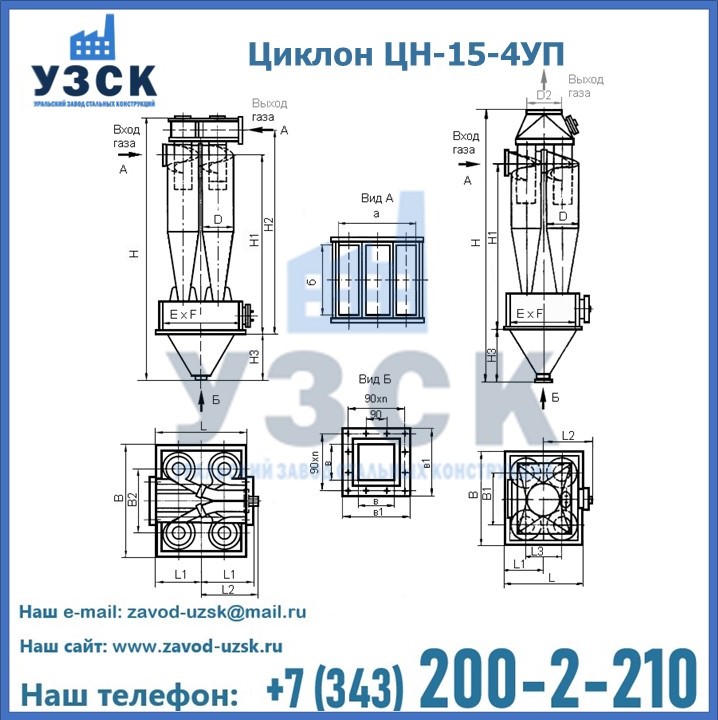 Завод «УЗСК» в Невинномысске предлагает большой выбор циклонов ЦН-15-900×4УП и прочих устройств, полностью укомплектованных и готовых к эксплуатации. Мы гарантируем соответствие оборудования всем требованиям ГОСТ и ТУ, износостойкость и высокую производительность предлагаемого оборудования. Уральский Завод Стальных Конструкций изготавливает и продает надежное, эффективное и производительное оборудование, имеющее длительную гарантию и большой эксплуатационный ресурс. Если требуется изготовить циклон нестандартных размеров, то такой вариант выполнения заказа тоже предусмотрен, так как предприятие имеет собственные производственные площади и надежных поставщиков. На все поставляемое или производимое оборудование имеются чертежи и прочая техническая документация. Заказать и купить циклоны или прочее оборудование высокого качества и по доступной цене можно через наш сайт или по указанному в разделе «Контакты» телефону.