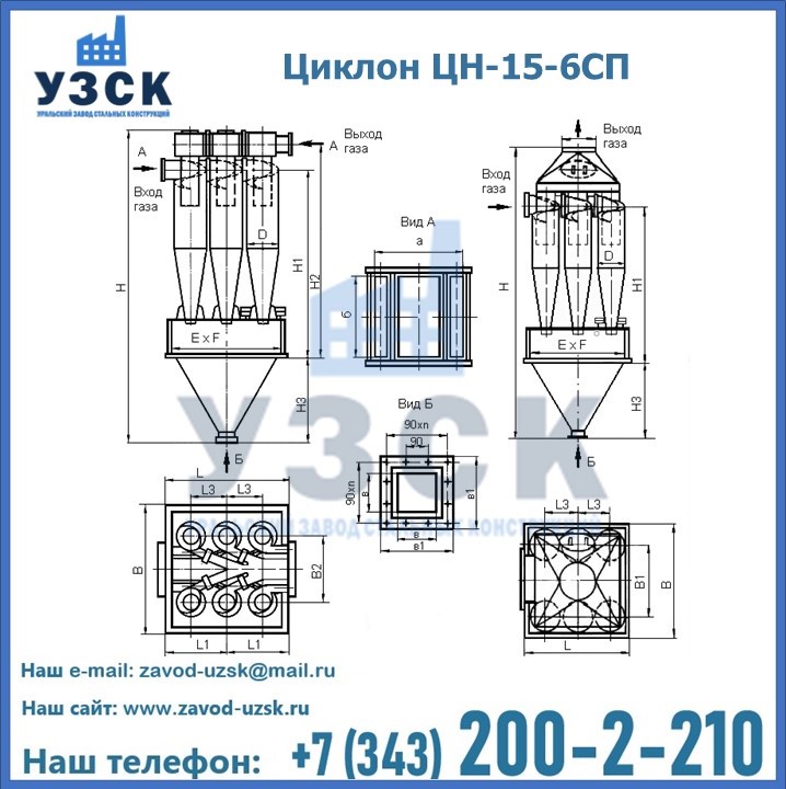 Завод «УЗСК» в Невинномысске предлагает большой выбор циклонов ЦН-15-900×6СП и прочих устройств, полностью укомплектованных и готовых к эксплуатации. Мы гарантируем соответствие оборудования всем требованиям ГОСТ и ТУ, износостойкость и высокую производительность предлагаемого оборудования. Уральский Завод Стальных Конструкций изготавливает и продает надежное, эффективное и производительное оборудование, имеющее длительную гарантию и большой эксплуатационный ресурс. Если требуется изготовить циклон нестандартных размеров, то такой вариант выполнения заказа тоже предусмотрен, так как предприятие имеет собственные производственные площади и надежных поставщиков. На все поставляемое или производимое оборудование имеются чертежи и прочая техническая документация. Заказать и купить циклоны или прочее оборудование высокого качества и по доступной цене можно через наш сайт или по указанному в разделе «Контакты» телефону.