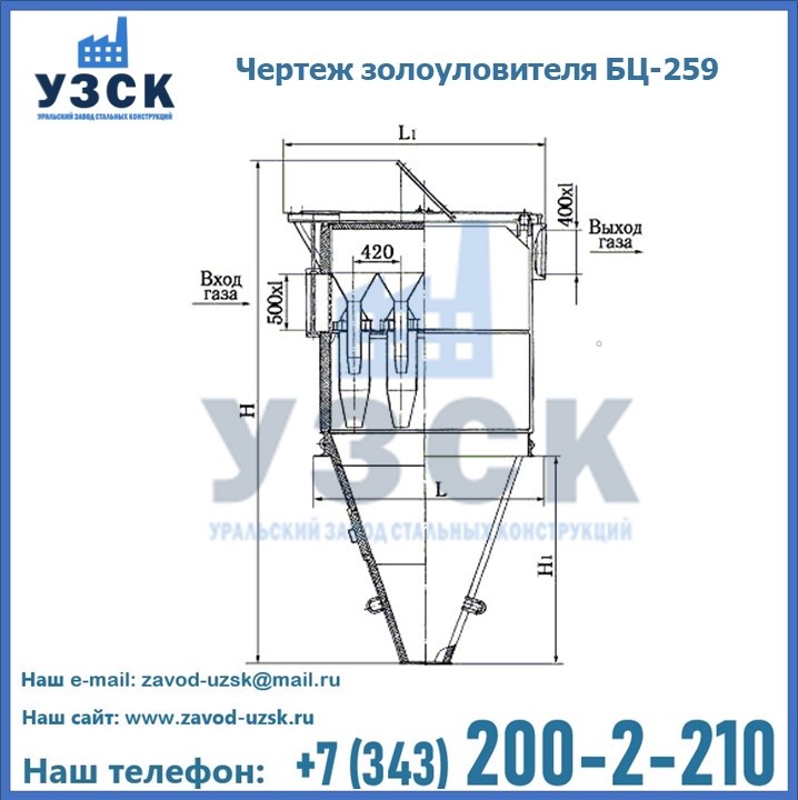 Если вы планируете купить то или иное оборудование, например, циклоны-золоуловители БЦ-259, то рекомендуем заказать данный товар на сайте УЗСК. Мы производим и реализуем продукцию высокого качества по приемлемой цене. Эксперты Уральского Завода Стальных Конструкций в Невинномысске проконсультируют вас по всем вопросам, помогут сделать выбор и оформить заказ без лишних временных затрат. Мы гарантируем соответствие нашей продукции всем требованиям ГОСТ и ТУ, а также износостойкость и высокую производительность предлагаемого оборудования. Если требуется изготовить циклон нестандартных размеров, то такой вариант выполнения заказа тоже предусмотрен, так как предприятие имеет собственные производственные площади и надежных поставщиков. На все поставляемое или производимое оборудование имеются чертежи и прочая техническая документация. Заказать и купить циклоны или прочее оборудование высокого качества и по доступной цене можно через наш сайт или по указанному в разделе «Контакты» телефону.