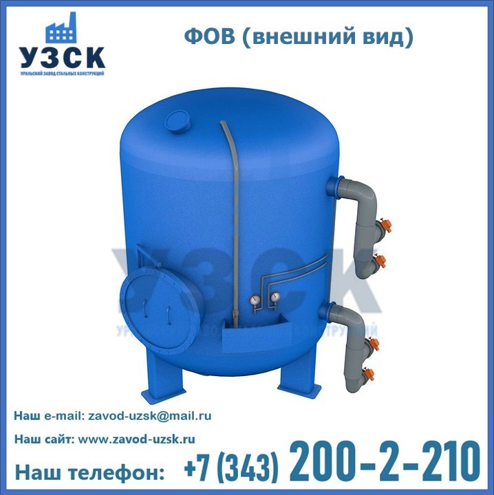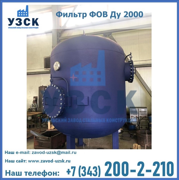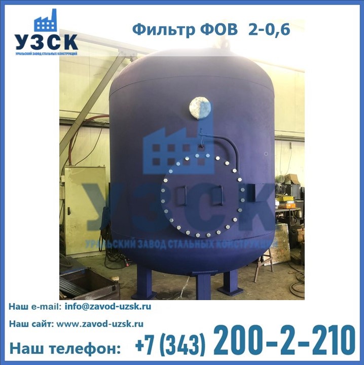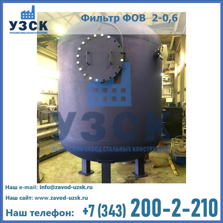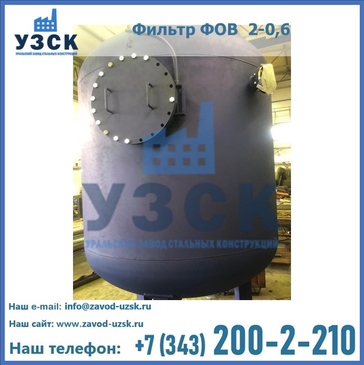 Удаление взвешенных веществ различного уровня дисперсности из рабочих жидкостей эффективно проводит фильтр осветлительный типа ФОВ (скорый или механический) — вертикально-цилиндрической формы установка, разработанная для систем водоподготовки различного класса. Оборудование представляет собой однокамерный агрегат для очистки воды рекомендованный для применения на станциях очистки стоков, в коммунальных котельных, на ТЭЦ, в промышленных отопительных системах и пр. Заказать производство ФОВ фильтров предлагает наш Уральский завод стальных конструкций в Невинномысске. У нас можно купить фильтрационное оборудование различного класса и типа, в том числе фильтры ФОВ из нержавеющей стали.