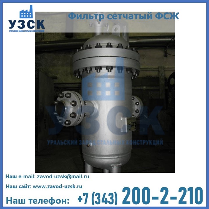 Очистку перекачиваемых жидкостей на предприятиях нефтяной, пищевой, горнорудной, фармацевтической и других отраслей промышленности эффективно выполнять с помощью жидкостного сетчатого фильтра — емкостное оборудование цилиндрической формы со съемной крышкой и элементом фильтрации внутри. Оснащенные им всасывающие линии насосных станций и установок защищены от проникновения твердых частиц в функциональные узлы гидравлической системы. Оборудование служит для перекачивания токсичных, агрессивных и иных эмульсий, суспензий, жидкостей. Купить фильтр сетчатый жидкостный ФСЖ в Невинномысске с гарантией производителя предлагает «Уральский завод стальных конструкций». Мы выполняем проектирование и изготовление ФСЖ по индивидуальным требованиям (климатическая зона, транспортируемая жидкость).