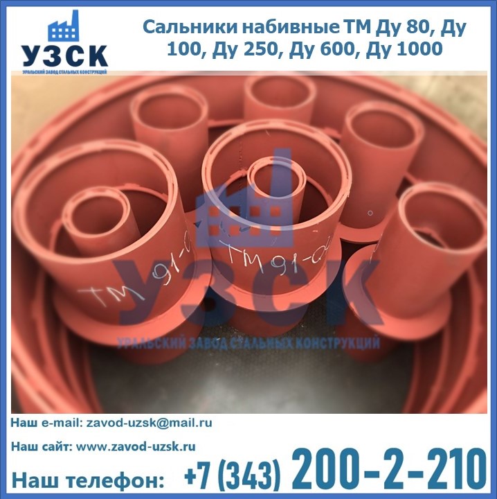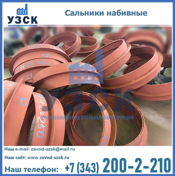 На производственных площадях Уральского Завода Стальных Конструкций в Невинномысске профессиональные сотрудники занимаются проектированием и разработкой различных закладных деталей, в частности осуществляется производство и реализация набивных и нажимных сальников. Все изделия, которые можно приобрести у нас, отвечают установленным требованиям по ГОСТу, а также прочей нормативной документации.